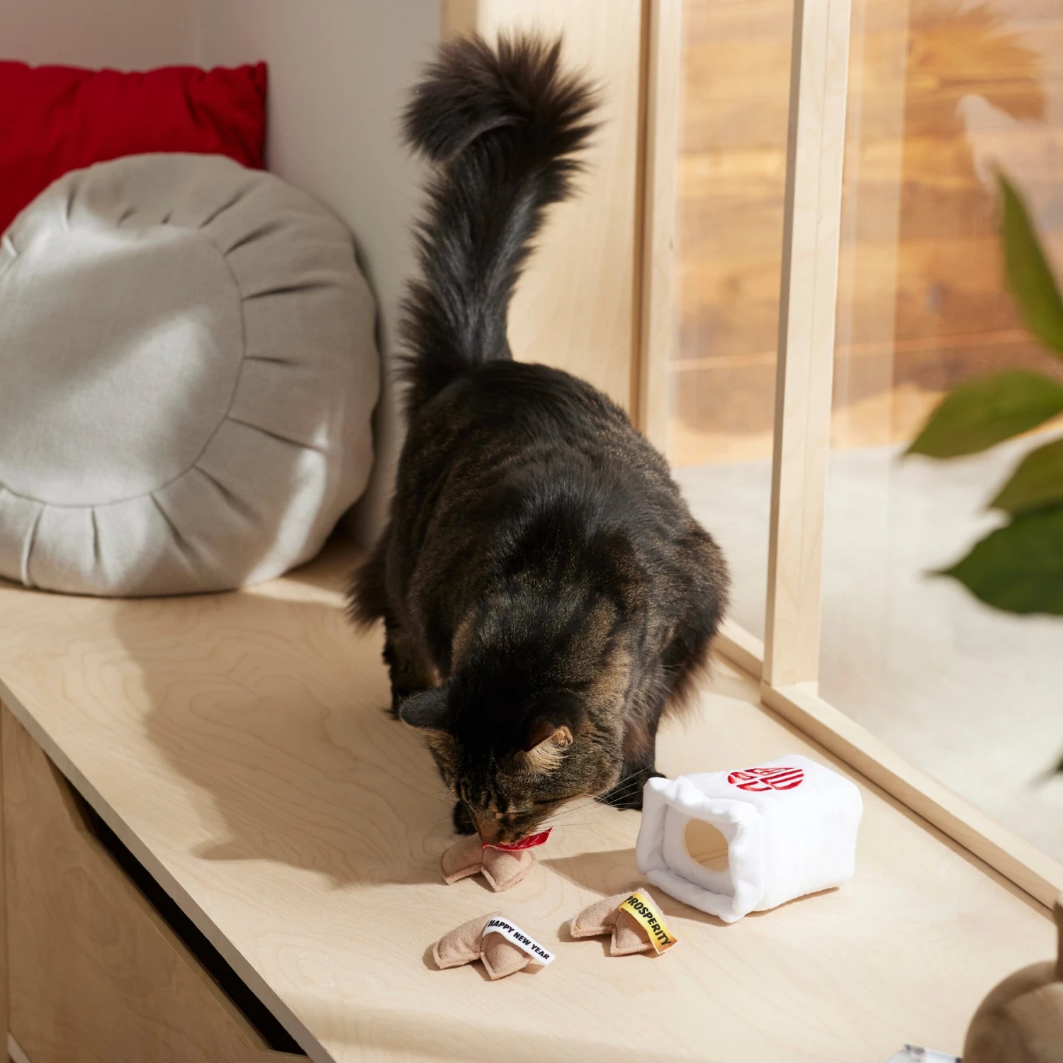 - Your kitty gets four toys to celebrate Lunar New Year with all the fun and games.